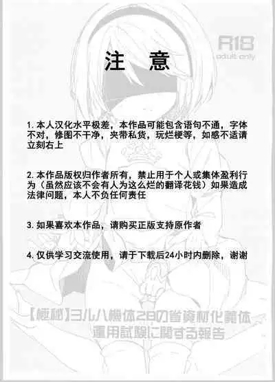 (COMIC1☆13) [Cocoa Holic (Yuizaki Kazuya)] [Gokuhi] YoRHa Kitai 2B no Shoushizaika Gitai Unyou Shiken ni Kansuru Houkoku|[Classified] Report on the Trial Run of YoRHa Unit 2B's Cost Saving Chassis (NieR:Automata) [English] [Nishimaru]