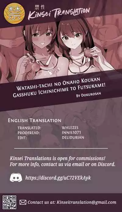(C100) [Yami ni Ugomeku (Dokurosan)] Watashi-tachi no Onaho Koukan Gasshuku Ichinichime! | Our exchange cocksleeve camp! First day! + Omake Paper [English] [Kinsei Translations] [Decensored]